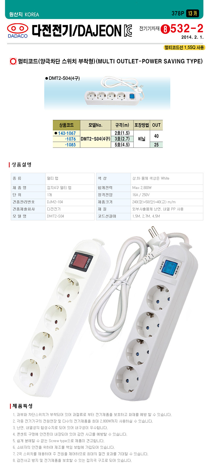[´ÙÀüÀü±â]¸ÖƼÅÇ/¸ÖƼÄÚµå/¸ÖƼÄܼ¾Æ®(DMT2-S04, 4±¸)(Multi Outlet-Power Saving Type)-¾ç±ØÂ÷´Ü½ºÀ§Ä¡ ºÎÂøÇü