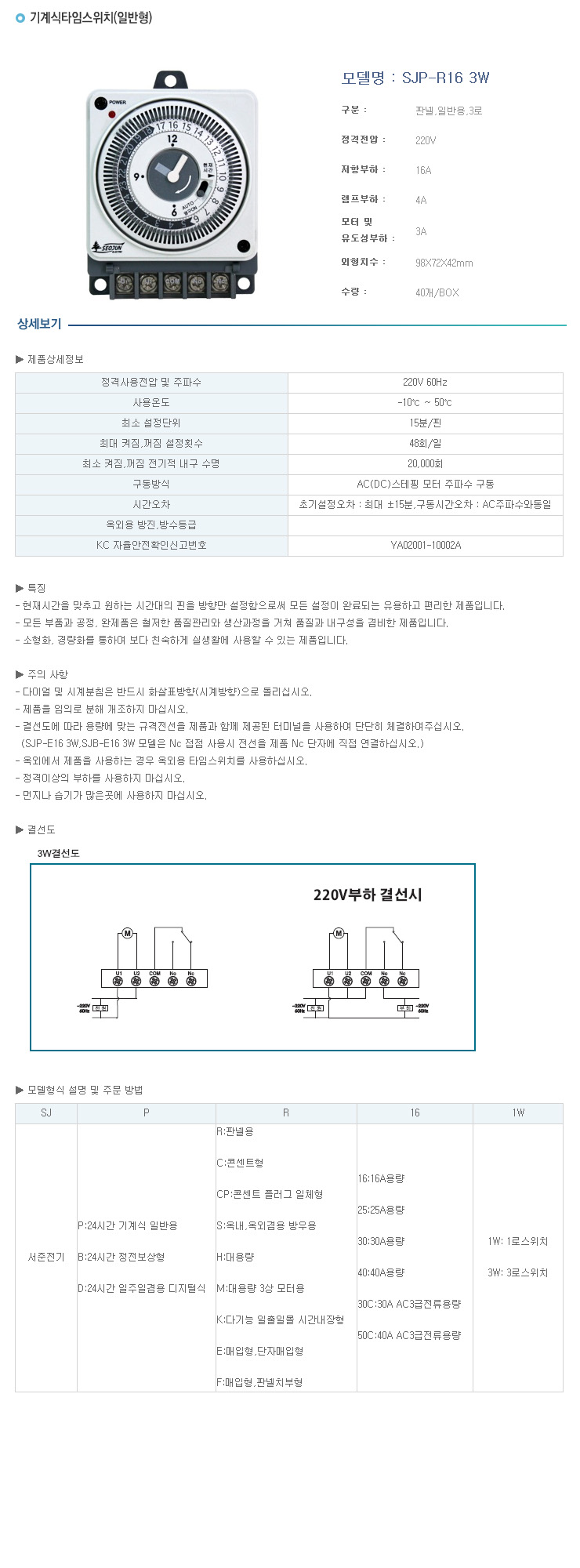 [¼­ÁØ]ÆÇ³Ú¿ë ÀϹÝÇü ±â°è½Ä ŸÀÓ½ºÀ§Ä¡(SJP-R16 3W, 3Kw¹Ì¸¸ºÎÇÏ, 3·Î½ºÀ§Ä¡)(Mechanical Time Switch)
