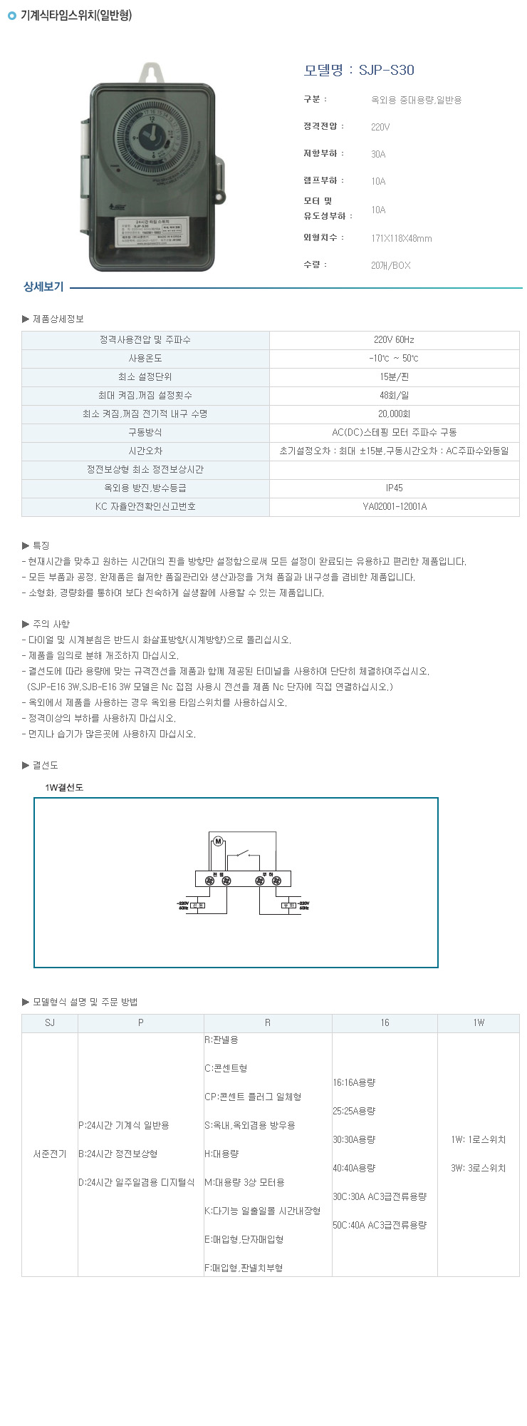 [¼­ÁØ]¿Á¿Ü¹æ¼ö¿ë Áß´ëÇüºÎÇÏ µðÁöÅРŸÀÓ½ºÀ§Ä¡(SJP-S30, 2.2Kw¹Ì¸¸ºÎÇÏ, ¹æ¿ìÇü ±â°è½Ä ŸÀÓ½ºÀ§Ä¡)(Mechanical Time Switch)