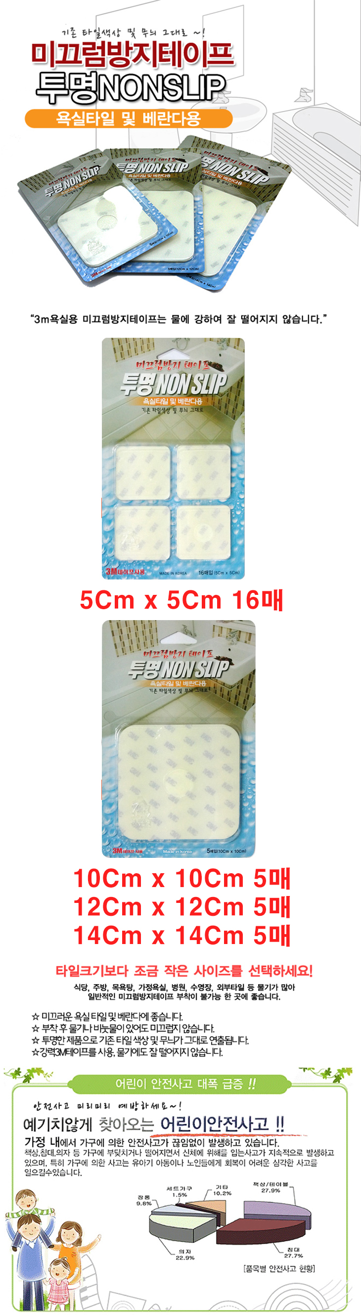 [KG] ŸÀÏ¿ë ³í½½¸³/¹Ì²ô·³¹æÁö(3M Åõ¸í ŸÀϹ̲ô·³¹æÁöÅ×ÀÌÇÁ, 120x120mm/140x140mm ¼±Åð¡´É, 5¸Å¹­À½)