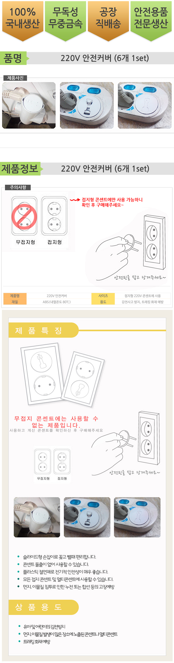 [KG] 220V ¾ÈÀüÄ¿¹ö/Äܼ¾ÅõÄ¿¹ö(6°³ ¹­À½, µ¹ÃâºÎ ¾øÀ½, ¾î¸°ÀÌ °¨Àü»ç°í¹æÁö)(Electrical Outlet Cover for baby safety)