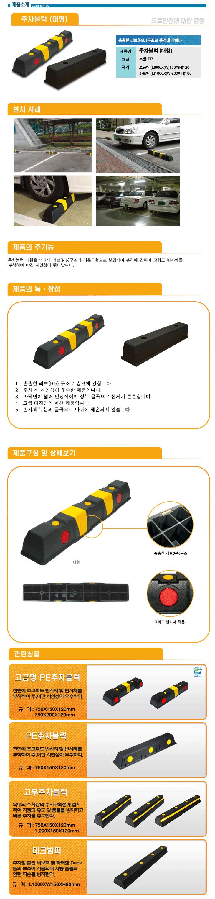 [HQ] ´ëÇü PEÇϳª·ÎÁÖÂ÷ºí·°/´ëÇü PEÇϳª·ÎÄ«½ºÅäÆÛ/ÁÖÂ÷¸ØÃãÅÎ(L900xW150xH120mm,PE/½ÅÇü,LH°ø»ç ÀûÇÕǰ¸ñ)(Car Stopper/Parking Block)