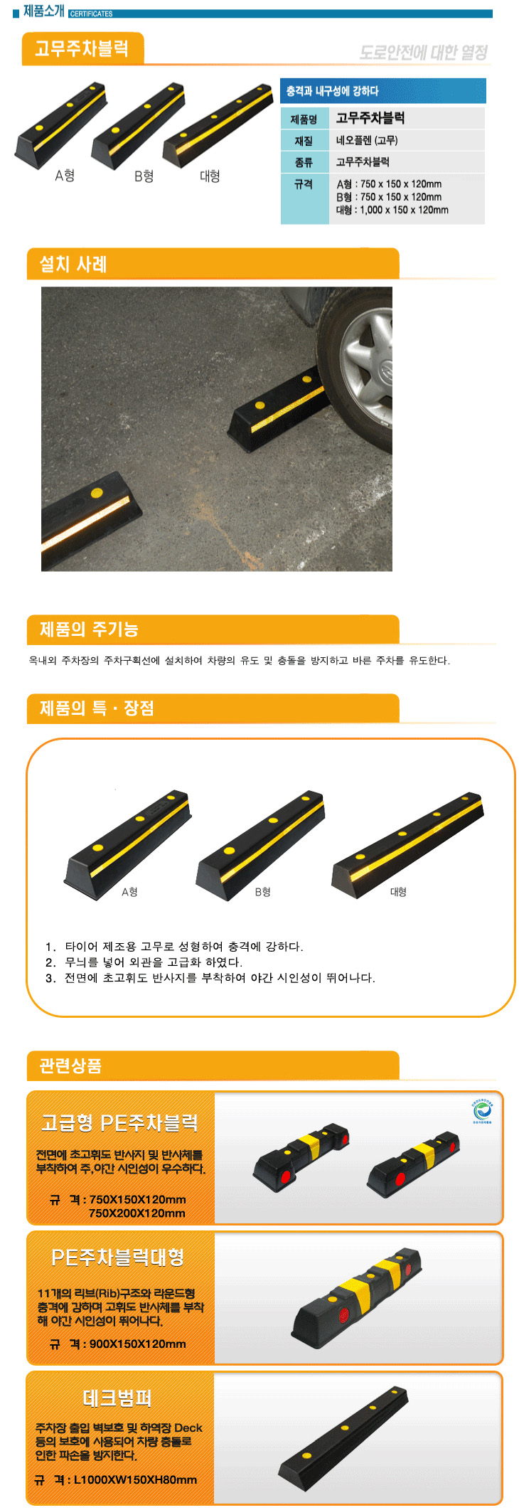 [HQ] ´ëÇü °í¹«ÁÖÂ÷ºí·°/°í¹«Ä«½ºÅäÆÛ(´ëÇü,L1000xW150xH120mm,°í¹«)(Car Stopper/Parking Block)