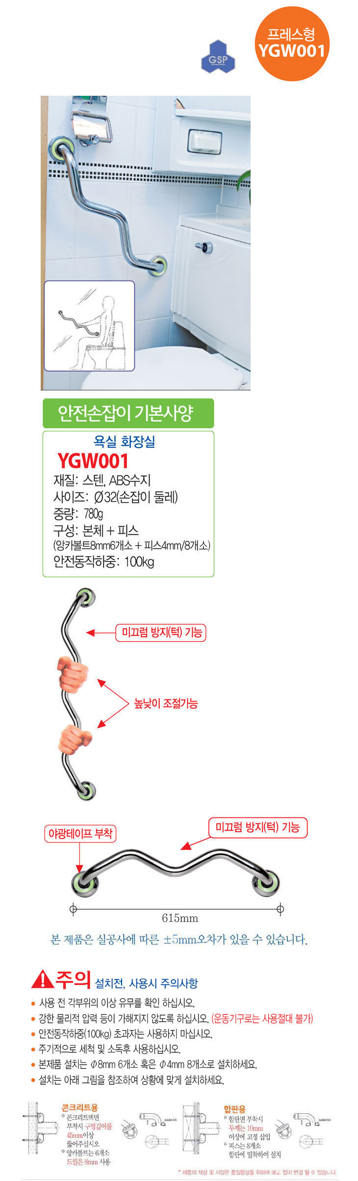 [UK]¾ÈÀü¼ÕÀâÀÌ(YGW001,32¨ªx615mm,¿å½Ç/È­Àå½Ç¿ë,ÇÁ·¹½ºÇü,ÇǽºÆ÷ÇÔ)