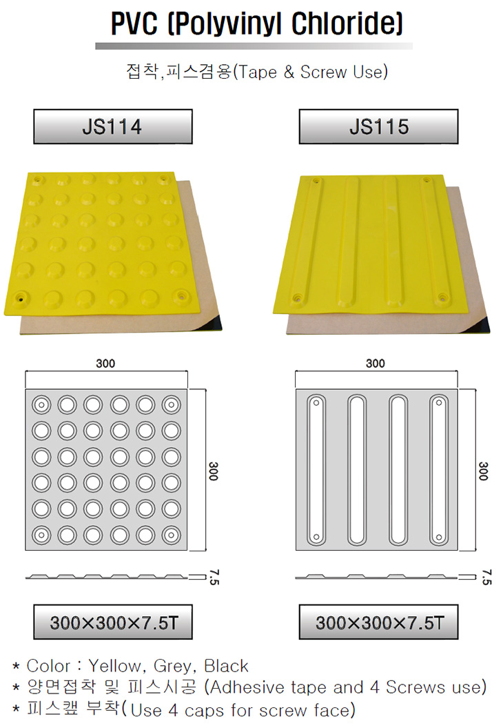 [HJ]Çǽº°íÁ¤ Á¡ÀÚºí·°(PVC,³ë¶õ»ö/½Ç¿Ü¿ë,300x300x7.5T)(Braille block)