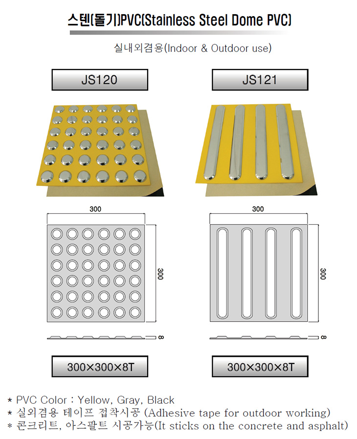[HJ]½ºÅÙ µ¹±âÇü PVC ¾ç¸éÅ×ÀÌÇÁ Á¢Âø½Ä Á¡ÀÚºí·°(300x300x7.5T)(Braille block)
