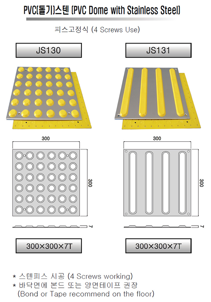 [HJ]½ºÅÙ Çǽº°íÁ¤ Á¡ÀÚºí·°(300x300x7T)(Braille block)