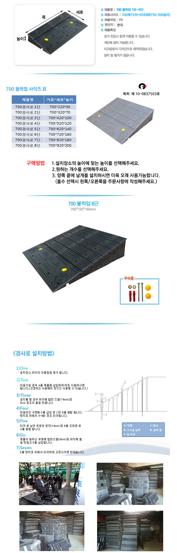 [UP] ºí·°¾÷700mm 6´Ü(700x720x³ôÀÌ160mm,¾ÓÄ«Æ÷ÇÔ,ÈÙü¾îÁøÀÔÆÇ/Á¡Æ÷ÁøÀÔÆÇ/Àå¾Ö¿ìÁøÀÔÆÇ)(Wheelchair Ramp/Curb Ramp/Threshold Ramp)