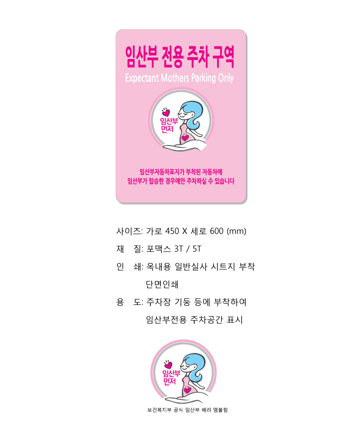 [WT]ÀÓ»êºÎÀü¿ë ÁÖÂ÷±¸¿ª ¾È³» Ç¥ÁöÆÇ(450x600mmx3T Æ÷¸Æ½º)(Expectant Mothers Parking Only)