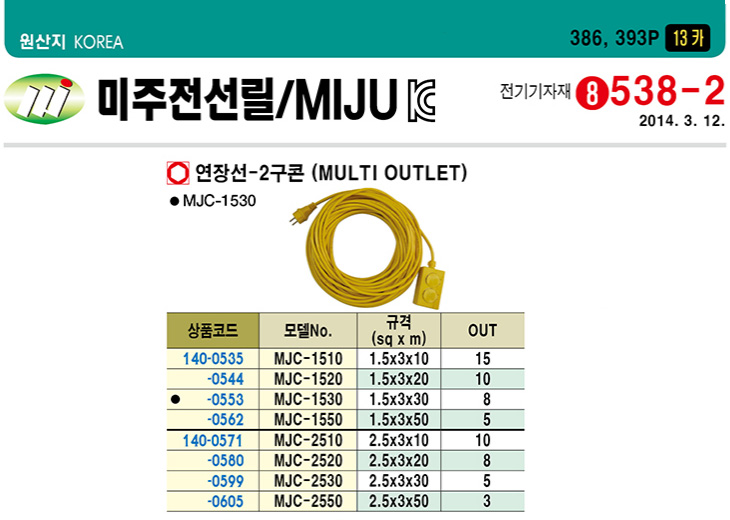 [¹ÌÁÖ]¿¬Àå¼±/2±¸ÄÜ(1.5Sq/3Core)(Multi Outlet)
