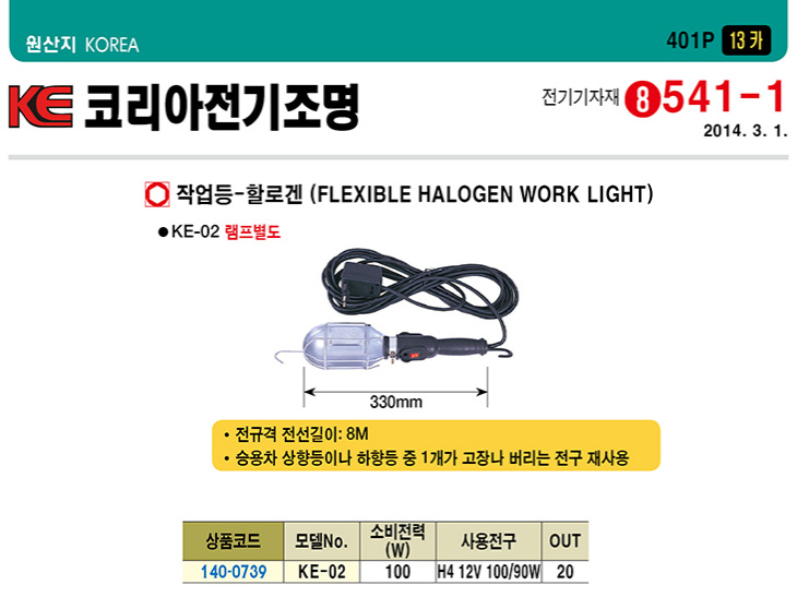 [KE]ÇÒ·Î°Õ ÀÛ¾÷µî(KE-02,100Watt/½Â¿ëÂ÷¿ë Çҷΰշ¥ÇÁ,H4 12V 100/90Watt Àü±¸»ç¿ë)(Flexible Halogen Working Light)