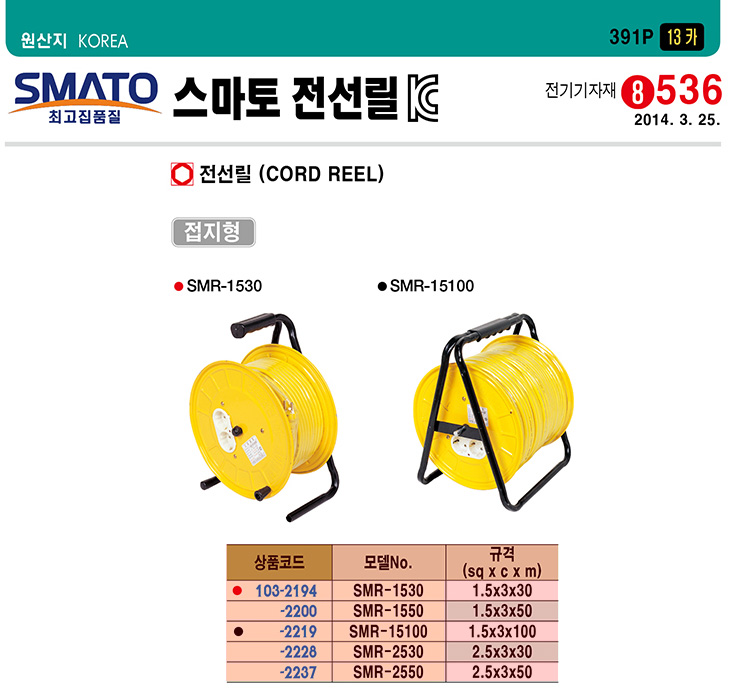 [½º¸¶Åä] Á¢ÁöÇü Àü¼±¸±(SMR-1530,1.5Sqx3Cx30¹ÌÅÍ)(Cord Reel)