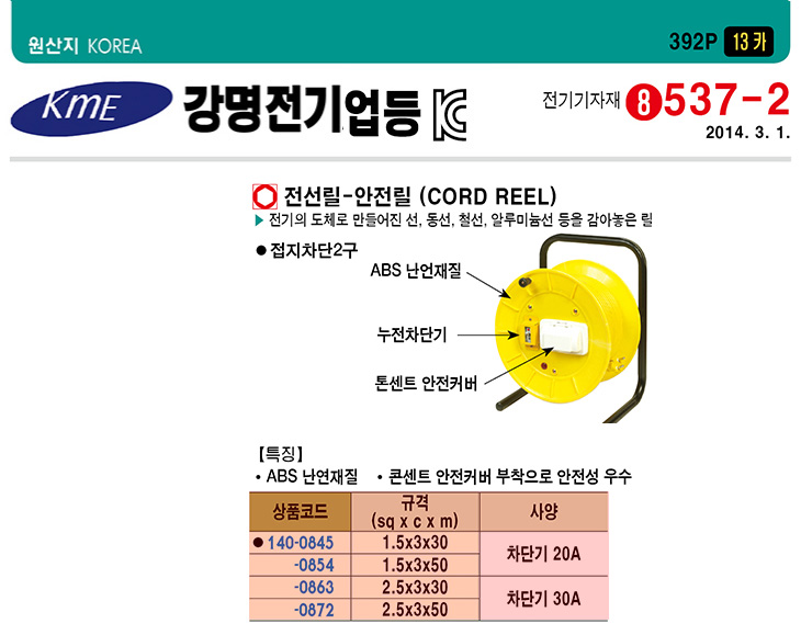 [°­¸íÀü±â]¾ÈÀüÄ¿¹ö Á¢Áö Â÷´ÜÇü 2±¸ Àü¼±¸±(1.5Sqx3Cx30¹ÌÅÍ)(Cord Reel)