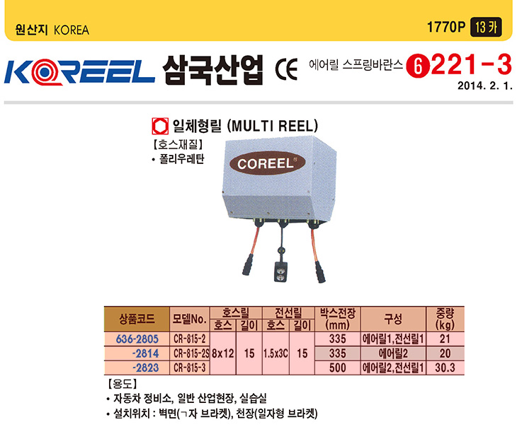 [»ï±¹»ê¾÷]ÀÏüÇü¸±(CR-815-2,¿¡¾î¸±:PUx8x15¹ÌÅÍ+Àü¼±¸±:1.5SQx3Cx15¹ÌÅÍ)(Multi Reel)