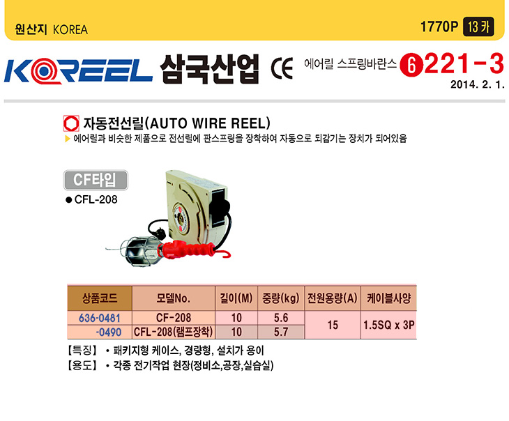 [»ï±¹»ê¾÷]·¥ÇÁÀåÂø ÀÚµ¿ Àü¼±¸±|ÄÉÀÌºí¸±(CFL-208,1.5SQx3Cx15¹ÌÅÍ)(Auto Wire Reel)
