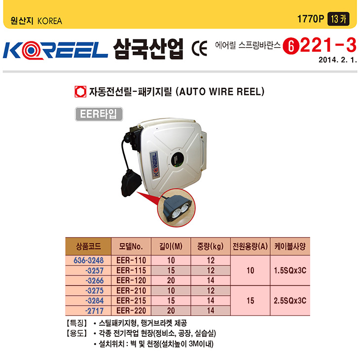 [»ï±¹»ê¾÷]ÆÐŰÁö ÀÚµ¿Àü¼±¸±|ÄÉÀÌºí¸±(EER-220,2.5SQx3Cx20¹ÌÅÍ)(Auto Wire Reel)
