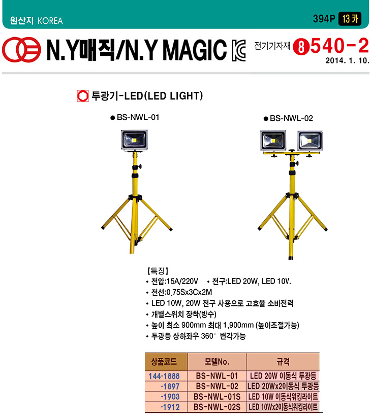 [NY¸ÅÁ÷]LED 1±¸ Åõ±¤±â(BS-NWL-01,LED 20Watt/À̵¿½Ä Åõ±¤µî)(LED Stand Light)