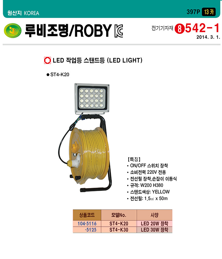 [·çºñÁ¶¸í]LED ÀÛ¾÷µî ½ºÅĵåµî(ST4-K20,20Watt)(LED Light)