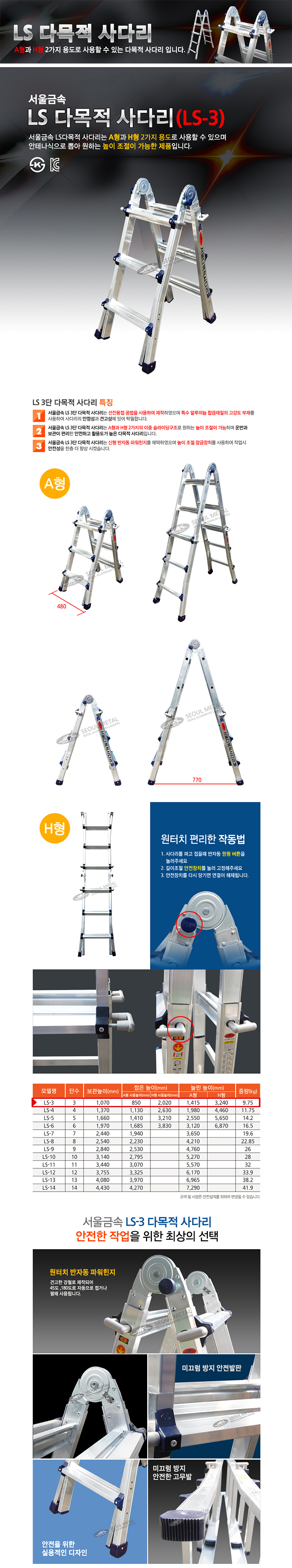 [SG] LSÇü ´Ù±â´É»ç´Ù¸®/´Ù¸ñÀû»ç´Ù¸®(LS-3,4x3´Ü,AÇü/HÇü °â¿ë,ÃÖ¼Ò1¹ÌÅÍ/ÃÖ´ë3.31¹ÌÅÍ)(Step Ladder for multi purpose)