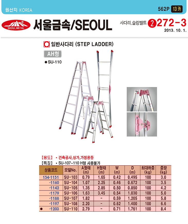 [SG]AÇü ÀϹݻç´Ù¸®(SU-110,10´Ü,AÇüÅÂ2.79¹ÌÅÍ)(Step Ladder for multi purpose)