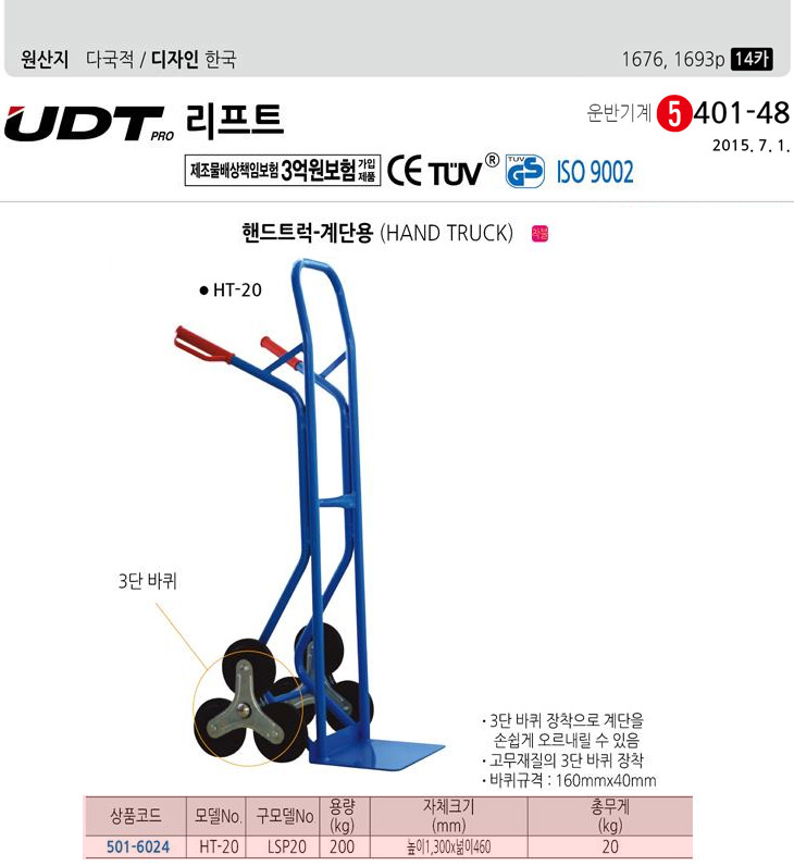 [UDT] °è´Ü¿ë ÇÚµåÆ®·°/°è´ÜÂ÷(LSP20, ºÎÇÏÁß·®:200Kg, 1300x460mm, °í¹«ÀçÁú 3´Ü ¹ÙÄû)(Hand Truck)