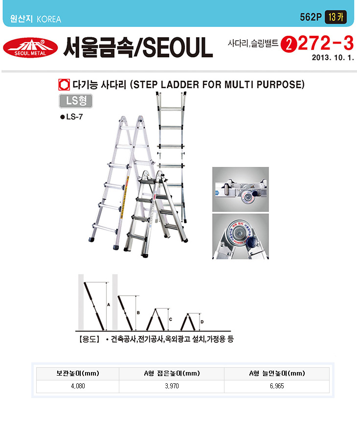 [SG] LSÇü ´Ù±â´É»ç´Ù¸®(LS-13,4x13´Ü,AÇü,ÃÖ¼Ò4.0¹ÌÅÍ/ÃÖ´ë 7.0¹ÌÅÍ)(Step Ladder for multi purpose)