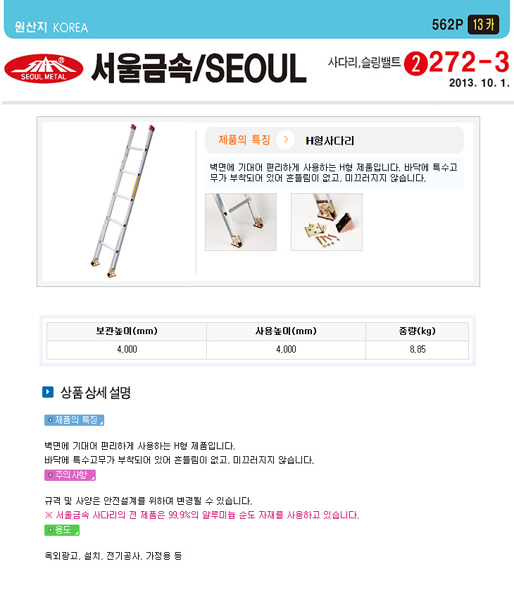 [SG] HÇü/ÀÏÀÚÇü ¿Ü´Ù¸® »ç´Ù¸®(4.0¹ÌÅÍ)(Step Ladder for Special Purpose)