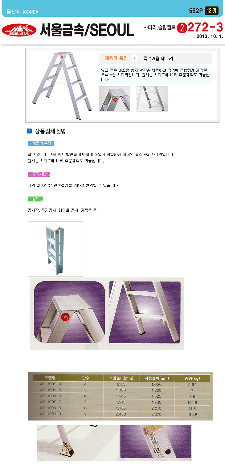 [SG]Ư¼öAÇü»ç´Ù¸®(AS-1999 6´Ü, 1.6¹ÌÅÍ)(Step Ladder for telecom)