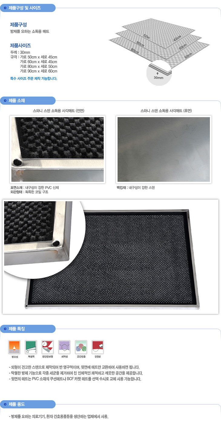 [SW]½ºµ§ ȸ»ö Á¡¹ÚÀÌ Ä«Æê ¼Òµ¶¿ë »ç°¢¸ÅÆ®(TSW8007,µÎ²²30mm)(¹æÀç ¼Òµ¶¿ë ¸ÅÆ®)(Disinfection mats)