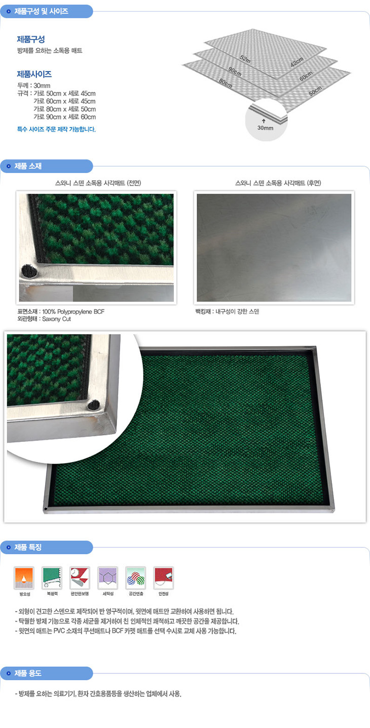 [SW]½ºµ§ ³ì»ö Á¡¹ÚÀÌ Ä«Æê ¼Òµ¶¿ë »ç°¢¸ÅÆ®(TSW8008,µÎ²²30mm)(¹æÀç ¼Òµ¶¿ë ¸ÅÆ®)(Disinfection mats)