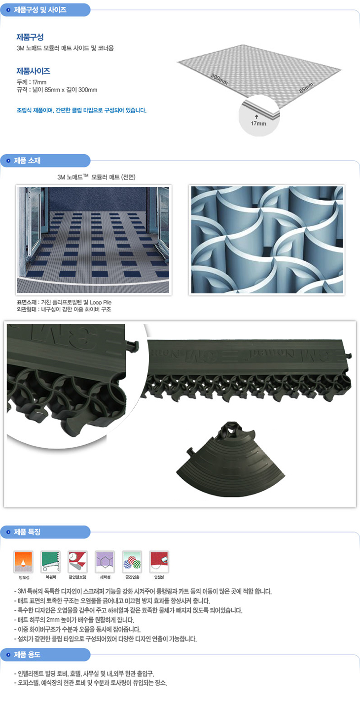 [SW]3M ³ë¸Åµå ¸ðµâ·¯ ¸ÅÆ® »çÀÌµå ¹× ÄÚ³Ê(3MSW8006,300x300mm/µÎ²²17mm)(ºôµùÇö°ü ¹× ÃâÀÔ±¸ ¸ÅÆ®)(3M¢â Nomad¢â modular matting)