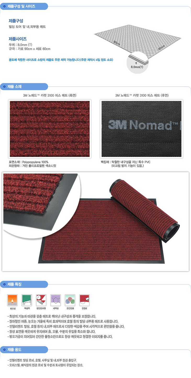 [SW]3M ³ë¸Åµå¢â Ä«Æê3100 Çǽº ¸ÅÆ®(3MSW3012,µÎ²²8mm/900x600mm)(Çö°ü/µµ¾î ³»¿ÜºÎ ¸ÅÆ®)(3M¢â Nomad¢â Scraper 3100 Carpet mat)