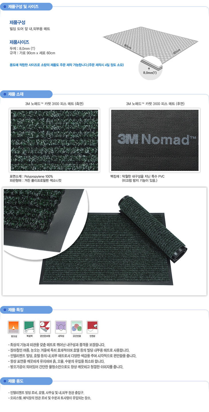[SW]3M ³ë¸Åµå¢â Ä«Æê3100 Çǽº ¸ÅÆ®(3MSW3017,µÎ²²8mm/900x600mm)(Çö°ü/µµ¾î ³»¿ÜºÎ ¸ÅÆ®)(3M¢â Nomad¢â Scraper 3100 Carpet mat)