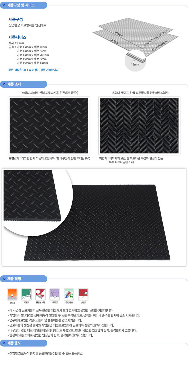 [SW] »ê¾÷¾ÈÀüÇǷιæÁö/ÇǷο¹¹æ ¾ÈÀü¸ÅÆ®(QSW7372,µÎ²²15mm/°ËÁ¤»ö)(Anti-Fatigue Mat)(ÁÖ¹®Àü Àç°íÈ®ÀÎ ¿ä¸Á)