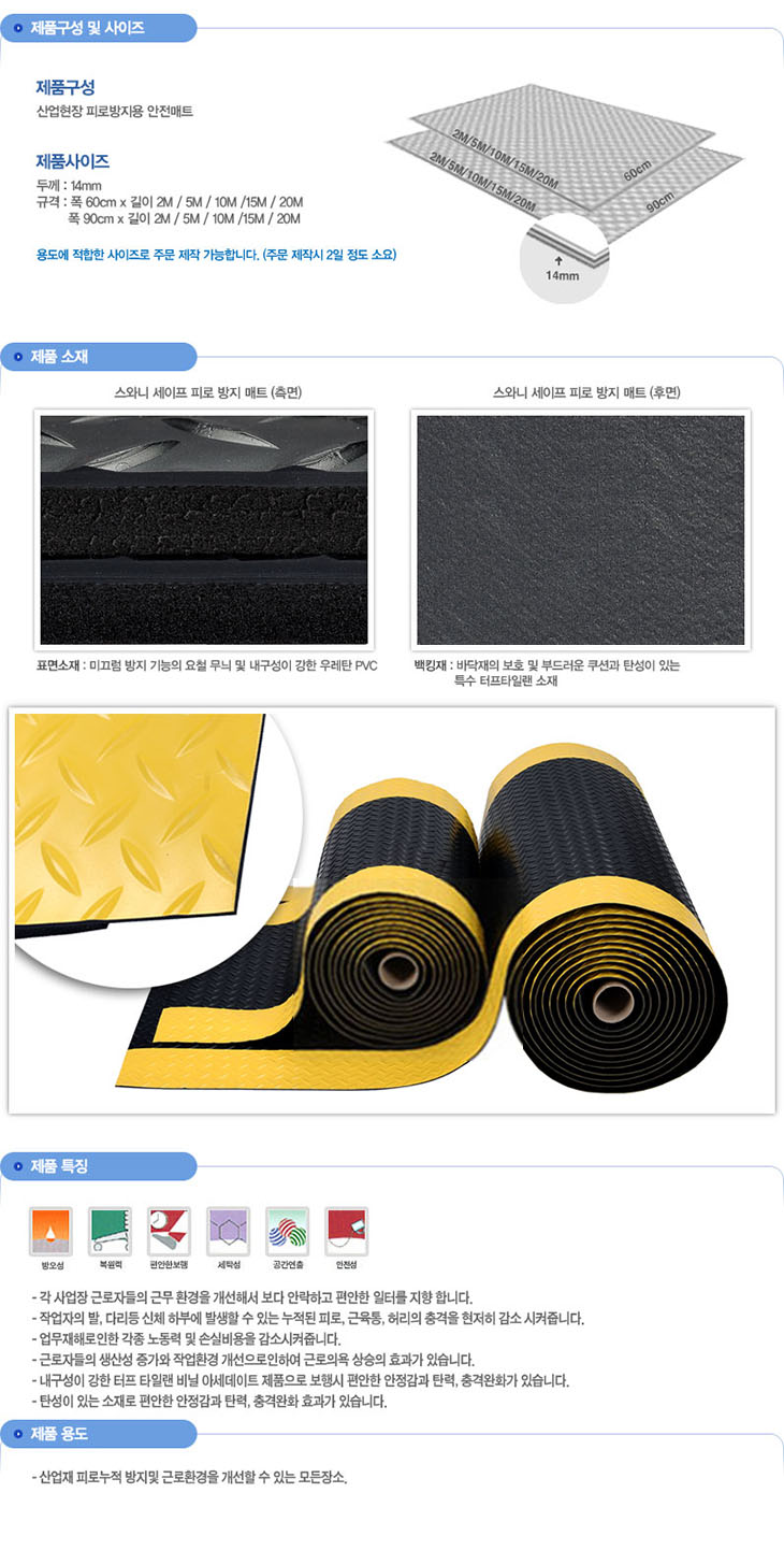 [SW]»ê¾÷¾ÈÀüÇǷιæÁö/ÇǷο¹¹æ ¾ÈÀü¸ÅÆ®(QSW7470,µÎ²²14mm/Æø60Cm,90Cm ¼±Åð¡´É,°ËÁ¤+³ë¶û)(Anti-Fatigue Mat)(¹ÌÅÍ´ÜÀ§)