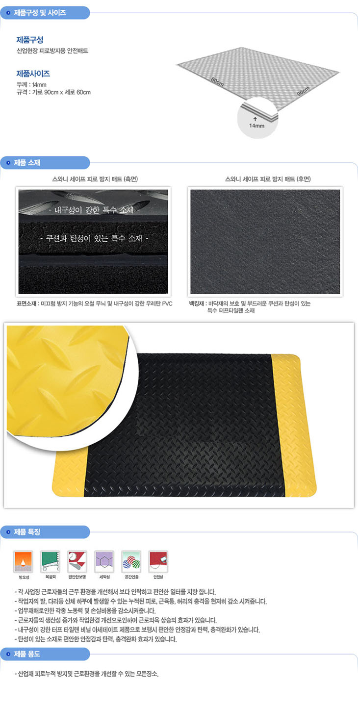 [SW]»ê¾÷¾ÈÀüÇǷιæÁö/ÇǷο¹¹æ ¾ÈÀü¸ÅÆ®(QSW7471,µÎ²²14mm/90x60Cm,°ËÁ¤+³ë¶û)(Anti-Fatigue Mat)