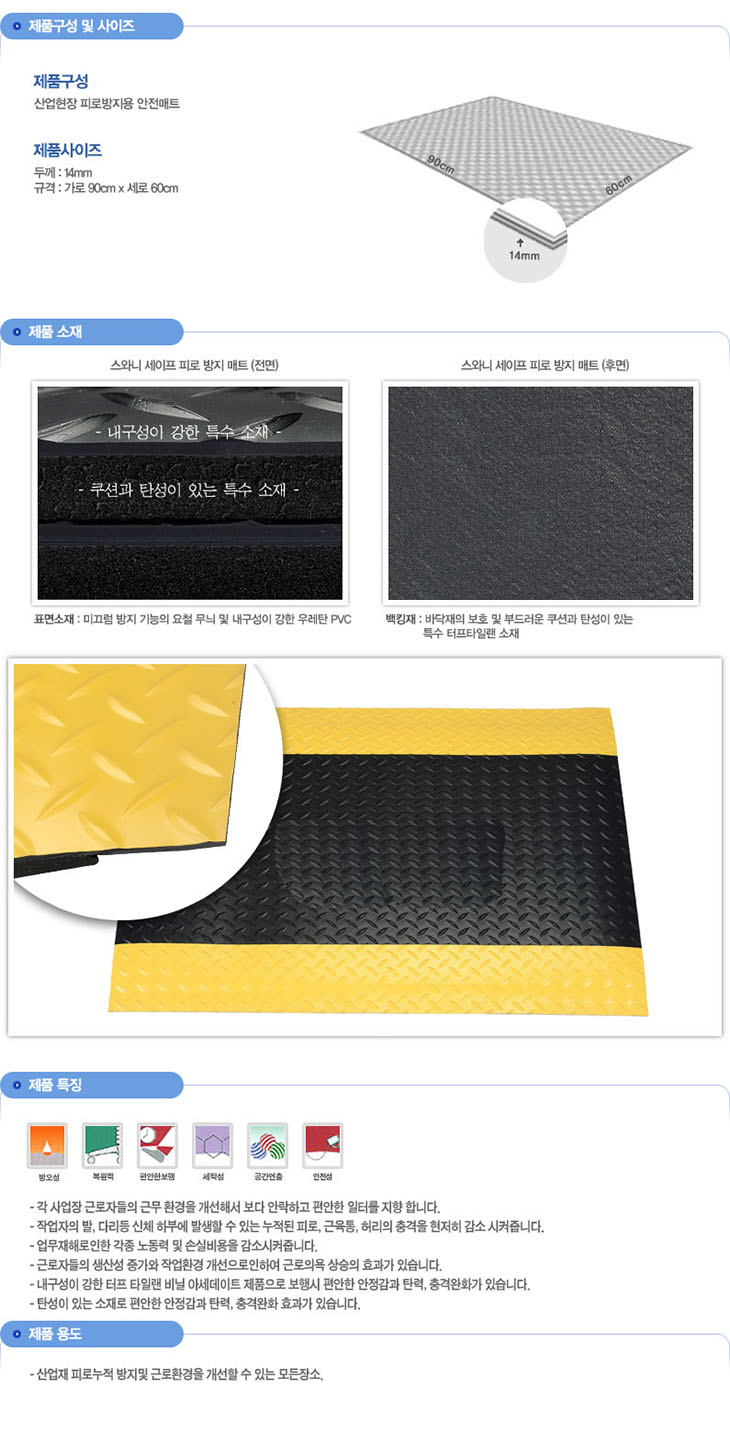 [SW]»ê¾÷¾ÈÀüÇǷιæÁö/ÇǷο¹¹æ ¾ÈÀü¸ÅÆ®(QSW7472,µÎ²²14mm/90x60Cm,°ËÁ¤+³ë¶û)(Anti-Fatigue Mat)