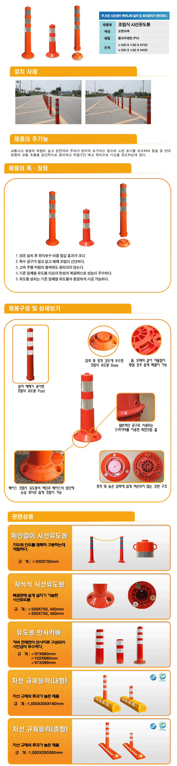 [HQ]Á¶¸³½Ä ½Ã¼±À¯µµºÀ/ź·ÂºÀ/Â÷¼±±ÔÁ¦ºÀ(200¨ªx80¨ªxH450mm,Æú¸®¿ì·¹Åº,¿À·»Áö»ö)(Flexible Road Delineator Post)