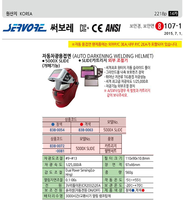 [½áº¸·¹]ÀÚµ¿Â÷±¤¿ëÁ¢¸é(û»ö,SV-5000X-SLIDE,Çï¸ä+SLIDEīƮ¸®Áö(AUTO DARKENING WELDING HELMET)