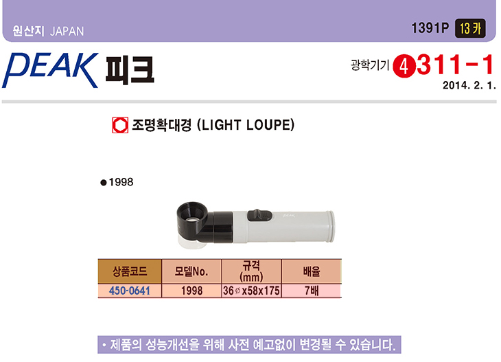 [PEAK/ÇÇÅ©]Á¶¸íÈ®´ë°æ(PEAK-1998,¨ª36x58x175mm,7¹èÁÜ)(LIGHT LOUPE)