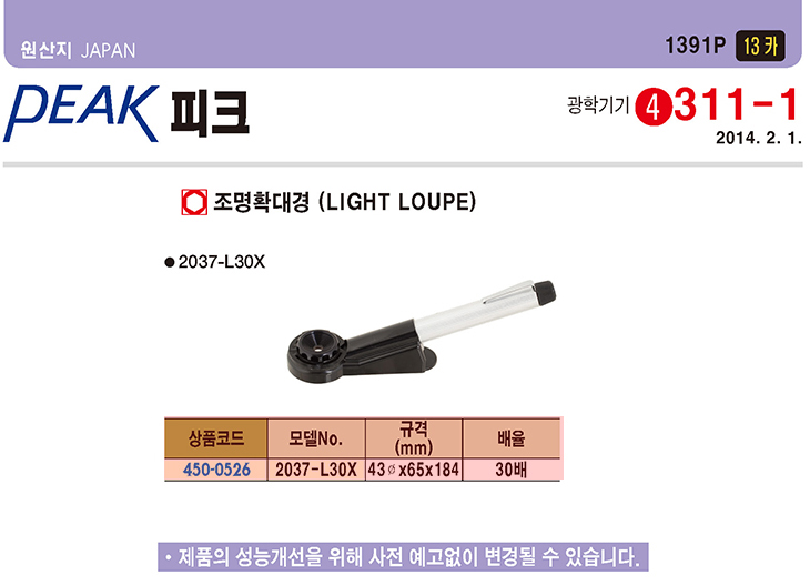 [PEAK/ÇÇÅ©]Á¶¸íÈ®´ë°æ(PEAK-2037-L30X,¨ª43x65x184mm,30¹èÁÜ)(LIGHT LOUPE)