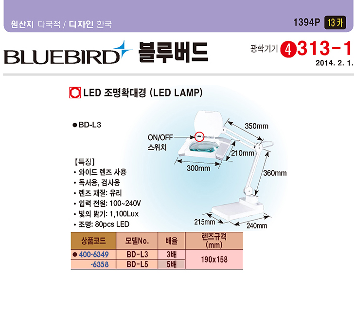 [BLUEBIRD/ºí·ç¹öµå]LED Á¶¸íÈ®´ë°æ(BD-L5,3¹èÈ®´ë,½ºÅĵåÇü,µ¶¼­/°Ë»ç¿ë)(LED Illumination Magnifier)