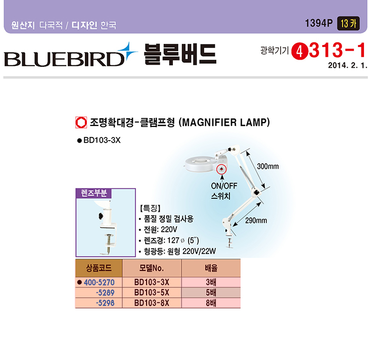 [¼¼±â±¤ÇÐ]Ŭ·¥ÇÁÇü Á¶¸íÈ®´ë°æ(BD103-5X/SK103-5X,¨ª127x5¹èÈ®´ë)(Lamp Type Magnifier)