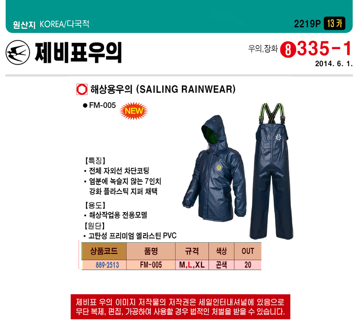 [Á¦ºñÇ¥¿ìÀÇ] ÇÁ·¹½¬¸¶¸° ÇØ»ó¿ë¿ìÀÇ(FM-005, ¼±¿ø¿ë¿ìÀÇ/¼±¹ÚÀÛ¾÷¿ë ¿ìÀÇ/ÇØÀü¿ë ¹æ¼ö½´Æ®/ÇØ»óÀÛ¾÷¿ë ¸á»§¿ìÀÇ, °ï»ö/¿¤¶ó½ºÆ¾PVC)(Sailing Rainwear)