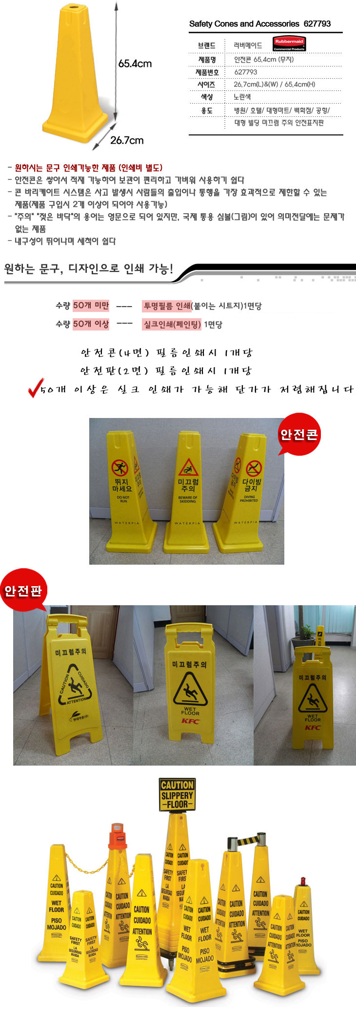 [RM]¾ÈÀüÄÜ ¹«Áö(Rubbermaid 627793,267x267x654mm,ÁÖ¹®Àμâ Áö¿ø/³ë¶õ»ö)(Safety Cones)