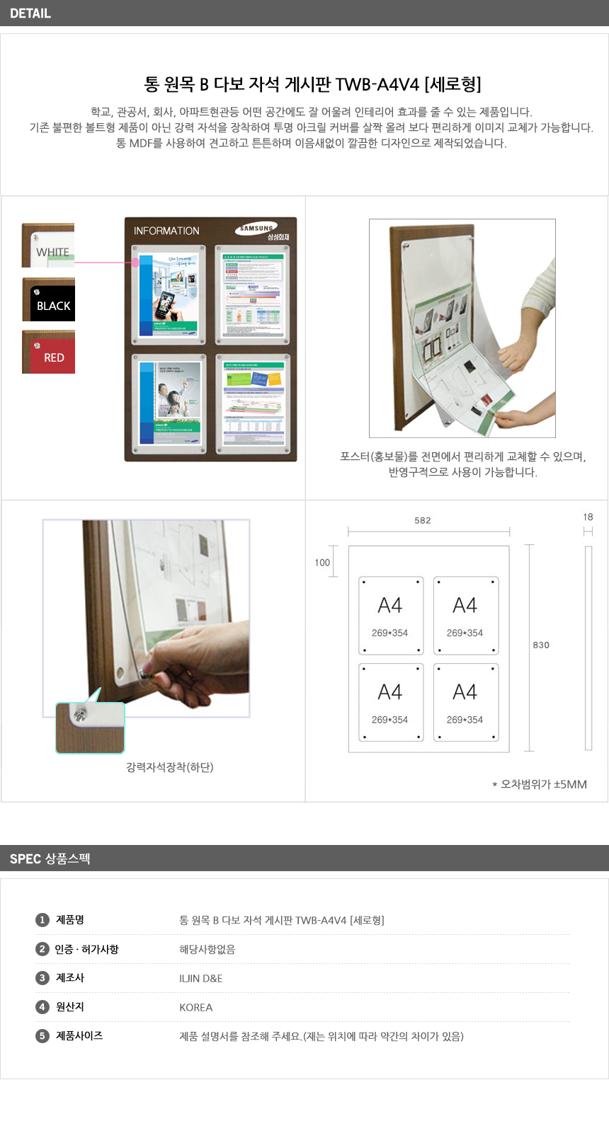 [ÀÏÁø] Åë ¿ø¸ñ B ´Ùº¸ ÀÚ¼® °Ô½ÃÆÇ(TWB-A4V4, A4 4¸Å ¼¼·ÎÇü 582x830mm, Çб³/°ü°ø¼­/ȸ»ç/¾ÆÆÄÆ® Çö°ü °Ô½ÃÆÇ, °­·ÂÀÚ¼® °Ô½ÃÆÇ)=>Á¦Ç°´ÜÁ¾!