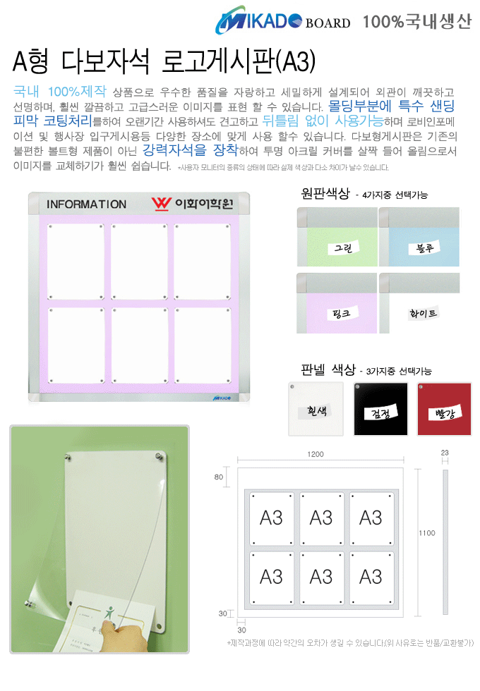 [ÀÏÁø] AÇü ´Ùº¸ÀÚ¼® ·Î°í°Ô½ÃÆÇ(A3x6Àå ¼¼·ÎÇü/105,1200x1100mm)
