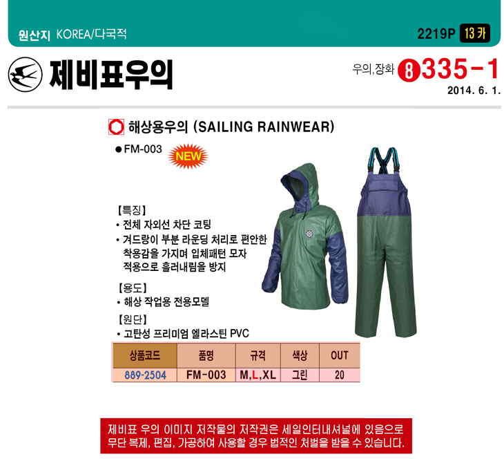 [Á¦ºñÇ¥¿ìÀÇ] ÇÁ·¹½¬¸¶¸° ÇØ»ó¿ë¿ìÀÇ(FM-003, ¼±¿ø¿ë¿ìÀÇ/¼±¹ÚÀÛ¾÷¿ë ¿ìÀÇ/ÇØÀü¿ë ¹æ¼ö½´Æ®/ÇØ»óÀÛ¾÷¿ë ¸á»§¿ìÀÇ, ±×¸°/¿¤¶ó½ºÆ¾PVC)(Sailing Rainwear)