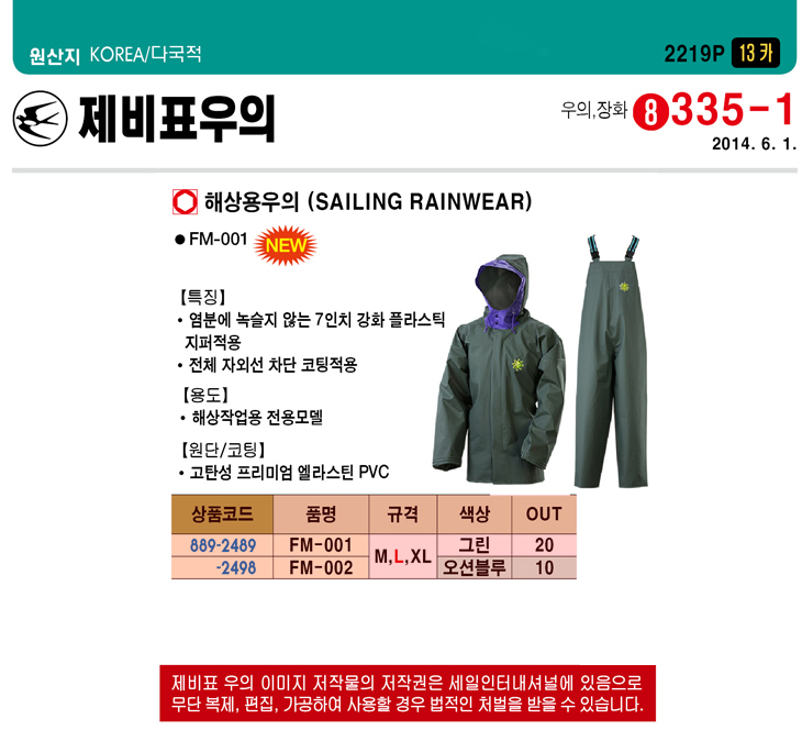 [Á¦ºñÇ¥¿ìÀÇ] ÇÁ·¹½¬¸¶¸° ÇØ»ó¿ë¿ìÀÇ(FM-002, ¼±¿ø¿ë¿ìÀÇ/¼±¹ÚÀÛ¾÷¿ë ¿ìÀÇ/ÇØÀü¿ë ¹æ¼ö½´Æ®/ÇØ»óÀÛ¾÷¿ë ¸á»§¿ìÀÇ, ¾ÆÄí¾Æºí·ç/¿¤¶ó½ºÆ¾PVC)(Sailing Rainwear)