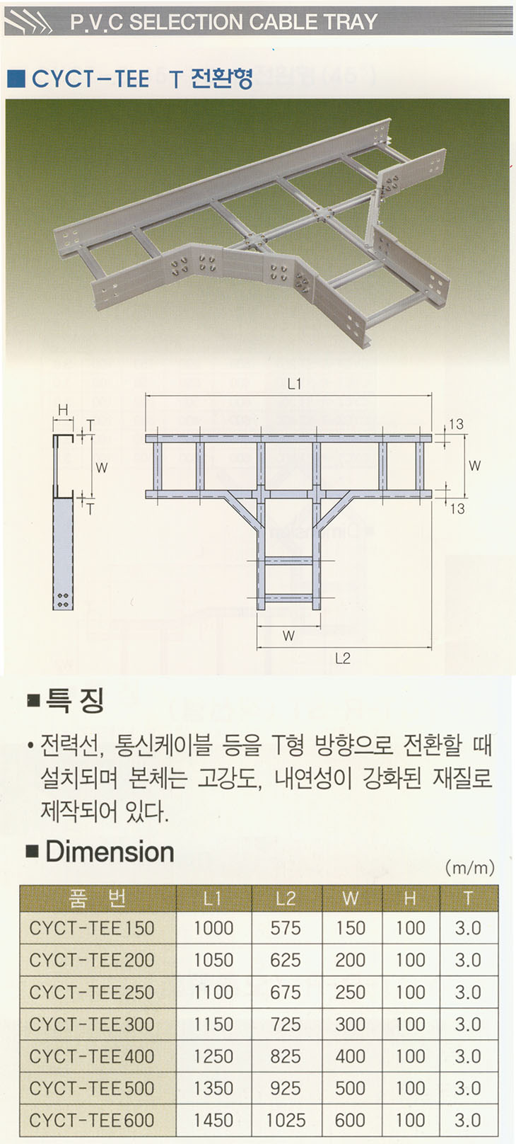 [CY] °í°­µµ PVCÄÉÀÌºí Æ®·¹ÀÌ TÀüȯÇü(CYCT-TEE,¼öÆò Ƽ ¿¤º¸,»çÀÌÁî ¼±Åð¡´É)(PVC Cable Tray T Accessory)